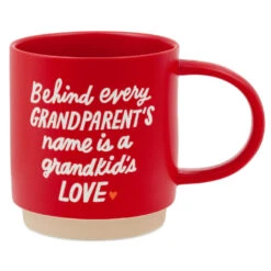 Give a proud grandparent this sweet coffee mug that lets everyone know they got their well-deserved name thanks to their grandchildren. With whimsical white script writing on matte red and a tiny heart accent, this coffee cup is a great grandparent gift on Mother’s Day, Father’s Day or a birthday.