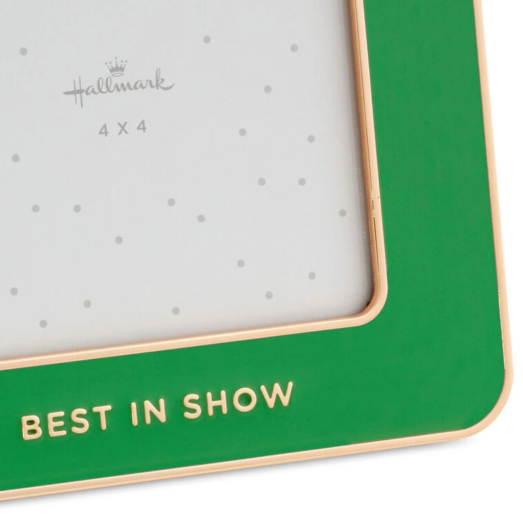 Capture a favorite picture of your pet being oh-so-dognified or meowvelously dapper with this cheery picture frame. Square metal photo holder features a spring green enamel design with rounded edges, shiny gold trim and a fun, embossed caption below the 4×4 opening. Unique frame makes a charming addition to your family room, office desk or bookshelf—or give it as a gift to a fellow fur baby fan.