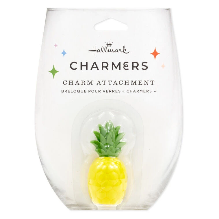Celebrate a new home, a beach vacation, retirement and more with a glass half full of a favorite beverage and this fun charm at the center of it all. This yellow pineapple silicone charm fits inside a Charmers drinking glass or stemless contour glass (both feature a post in the bottom of the glass to hold the charm front and center). And with the unique charm in place, it’s easy to identify your drink among all the other glasses on the table. This pineapple glassware decor makes a great gift for any occasion when paired with a coordinating glass (not included).