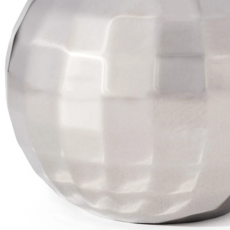 - Disco ball mug features a round shape and mirror-like silver finish.
