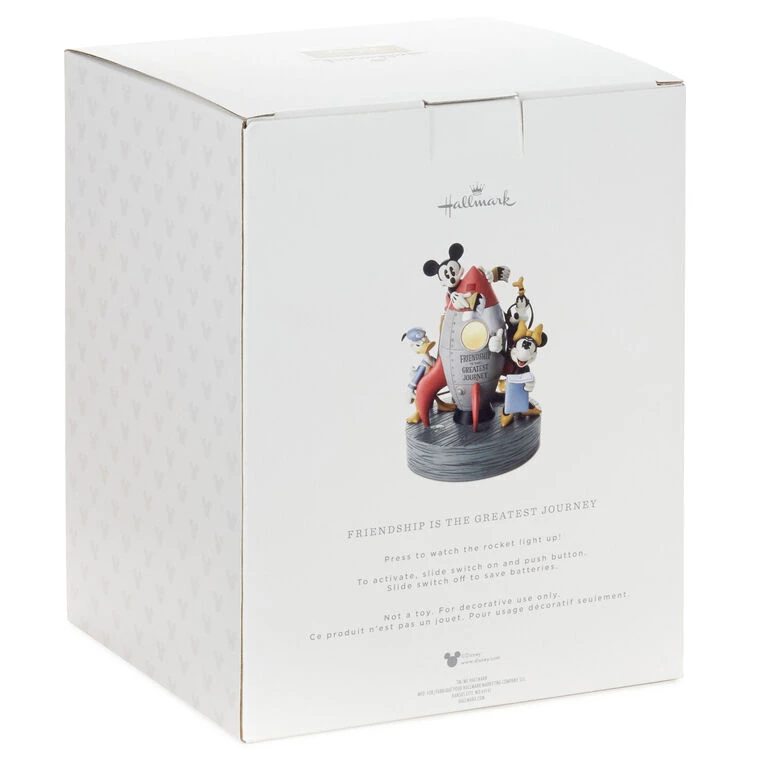 - Light-up figurine features Disney Mickey Mouse and his friends painting a rocket ship.