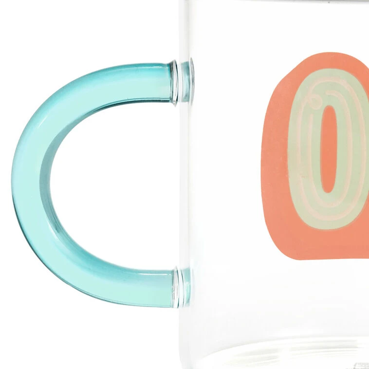 Celebrate a 40th birthday with this unique glass mug. Featuring a bold “40” design in aqua and orange and a teal-tinted handle, this modern coffee cup makes a great way to commemorate a friend or family member’s milestone birthday.