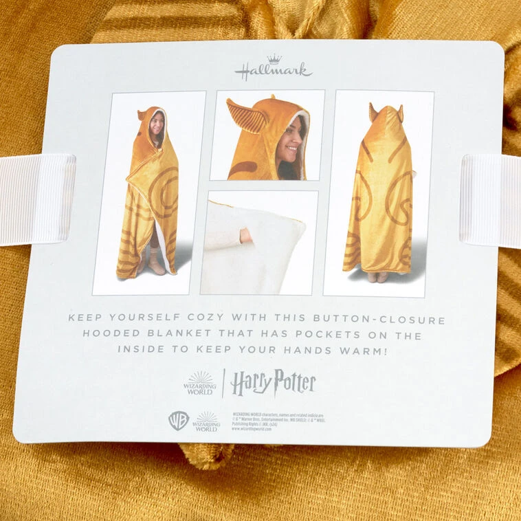 - Harry Potter Golden Snitch sherpa-lined blanket features a hood with wing attachments, corner pockets and a value closure with loop.