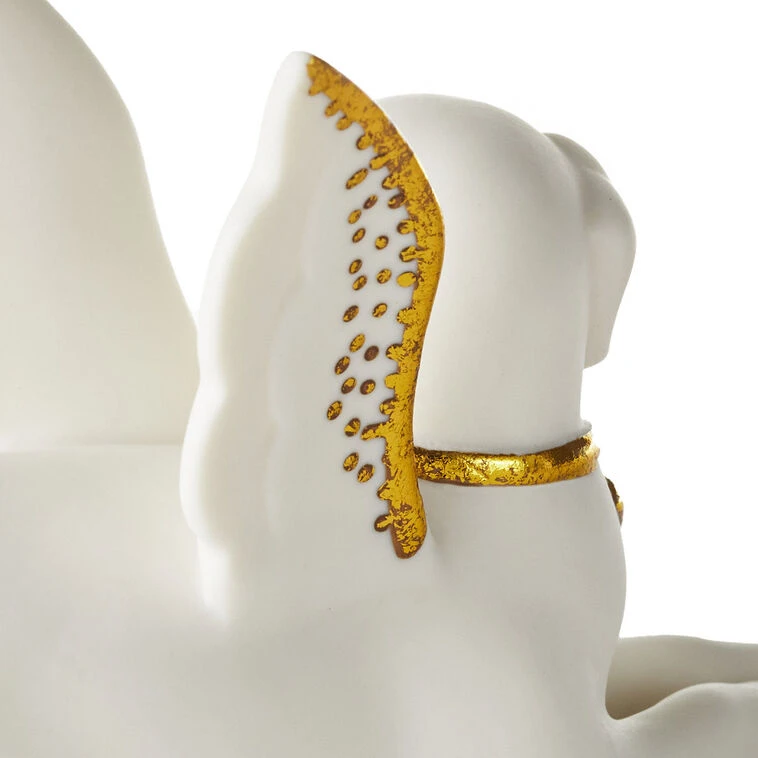 - Dog angel figurine designed by Joanne Wright features gold foil accents.