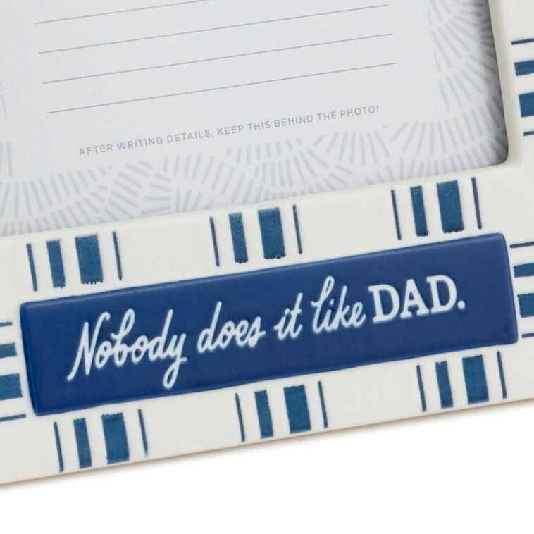 Give dad a fun way to show off his perfect parenting skills with this blue plaid picture frame for his favorite family photo. This dark blue and white photo holder features a raised caption area below the 4×6 horizontal photo opening. Inscribed with a heartfelt message in white lettering, this dad picture frame makes a memorable gift for Father’s Day, his birthday or just because.