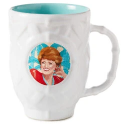 - The Golden Girls sculpted ceramic mug features a Blanche Devereaux image and quote with embossed woven rattan pattern.