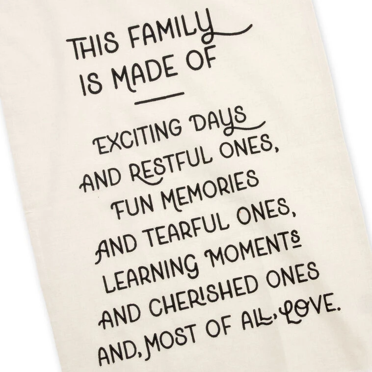 - On towel: This family is made of exciting days and restful ones, fun memories and tearful ones, learning moments and cherished ones, and, most of all, love.
