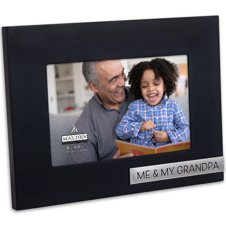 Showcase a cherished memory of a granddad and his grandchild in this sleek black picture frame. Featuring a silver metal attachment with engraved message that reads “Me & My Grandpa,” this wood frame makes the perfect gift for birthdays, Father’s Day, Christmas or just because.
