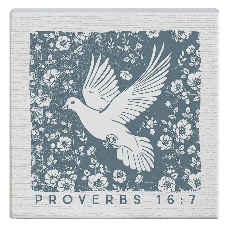 Be at peace with God in your heart, and that peace will be conveyed to everyone around you. This unique wood quote block from Sincere Surroundings features a dove design surrounded by flowers and a Bible passage from Proverbs sharing a message of faith. The pretty blue-and-white design makes a lovely addition to any home.