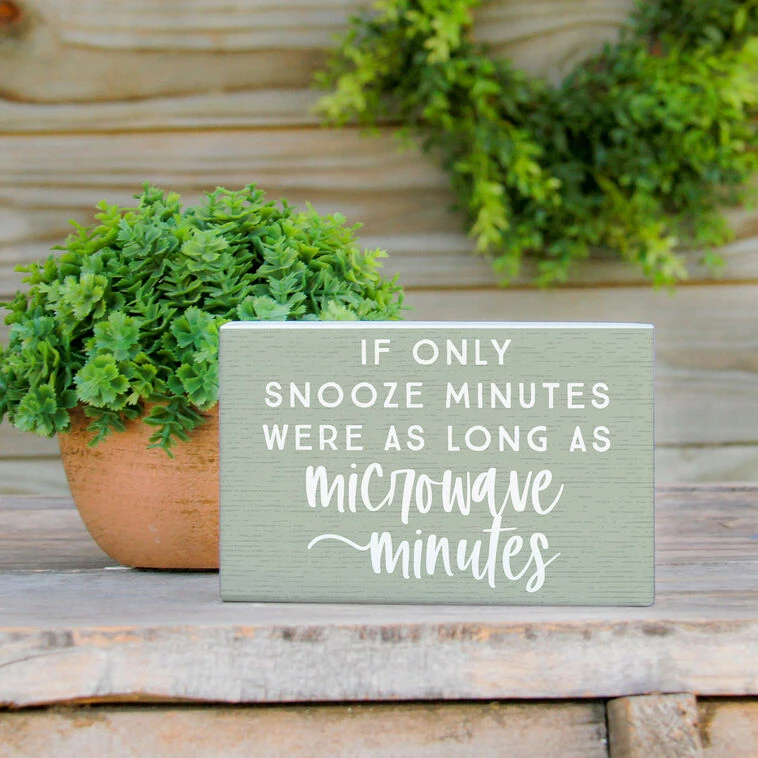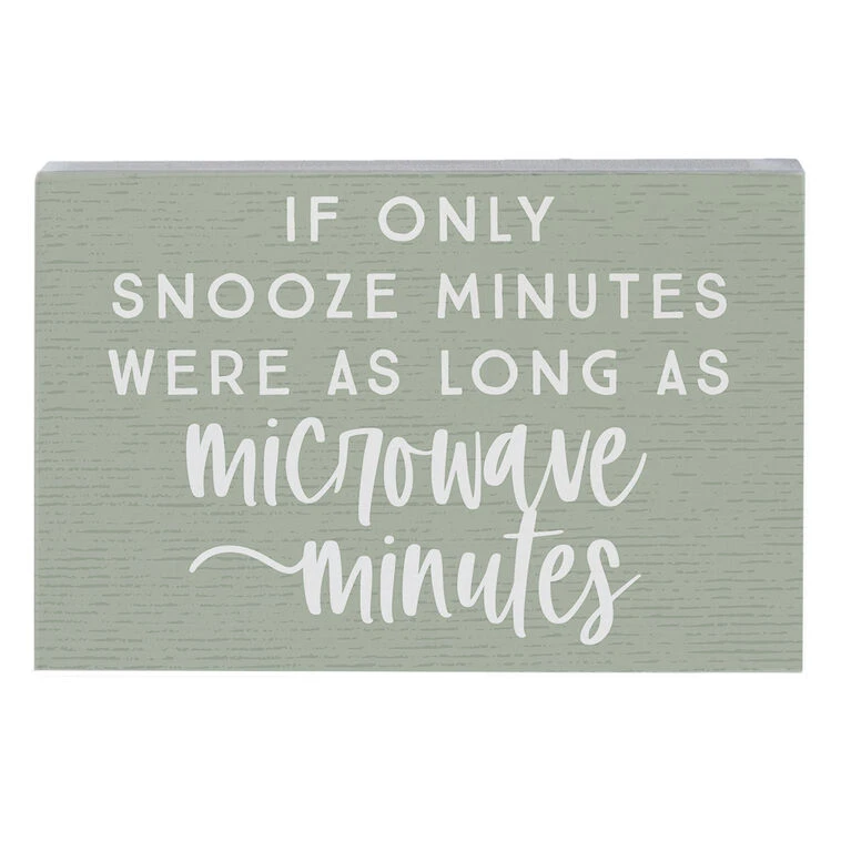 - On sign: If only snooze minutes were as long as microwave minutes.